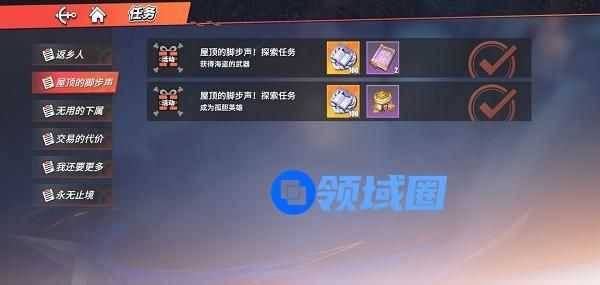 1.第二关【屋顶的脚步声】探索任务,任务要求如下:2个
