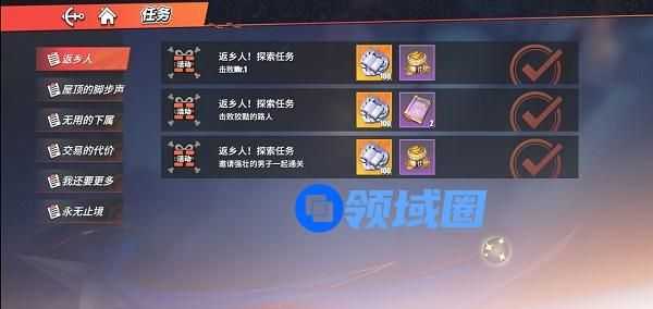 一、第一关【返乡人】探索任务,任务要求如下:3个