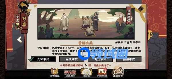 2.正确答案为元和中兴,玩家们选择第一个答案即可获得奖励。