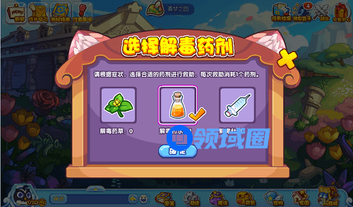 6、点击晕头转向的宠物就可以进行救助了,如果不知道宠物中毒情况的小洛克,推荐从左到右选择药剂,不合适不会扣除药剂的,