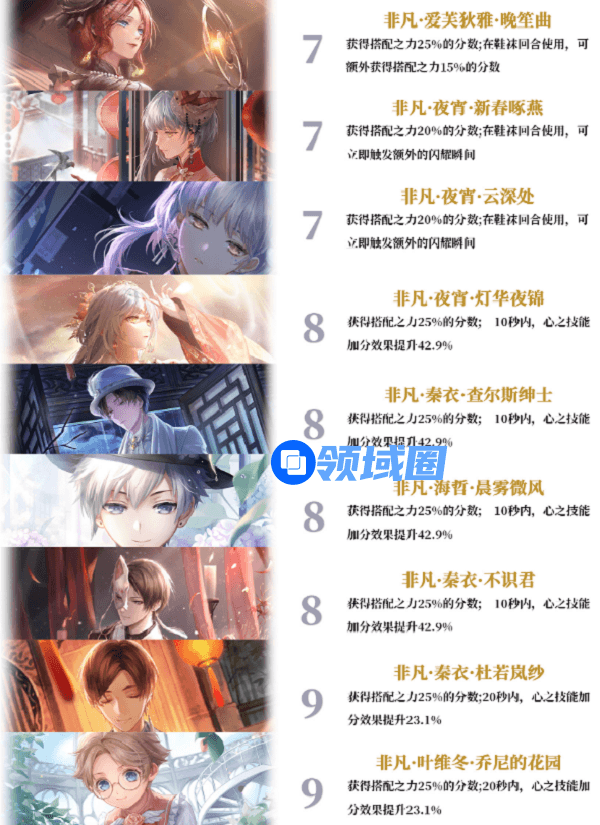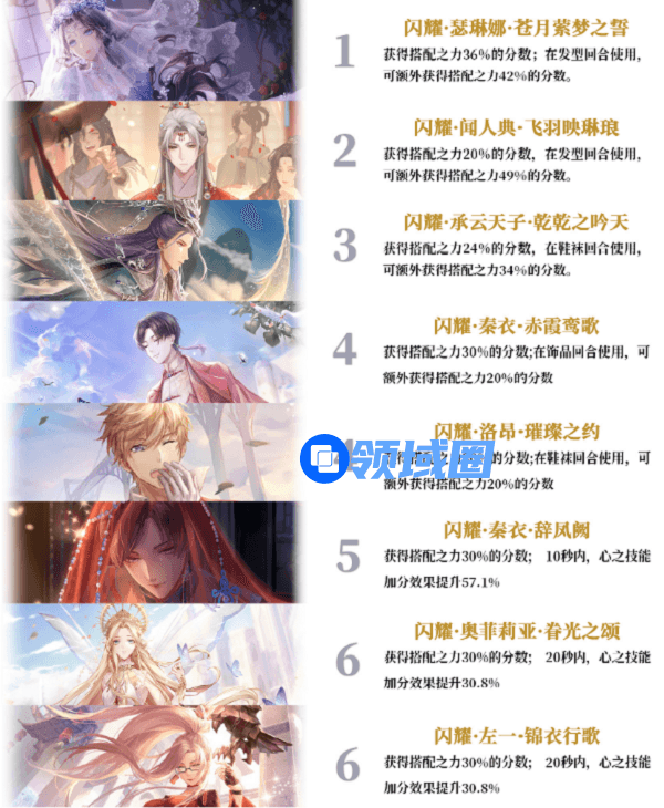6、辞凤阙:获取方式比较友好,有能力主动被动全满破的话竞技场会优于璀璨之约锦衣行歌、眷光之颂:竞技场获取。