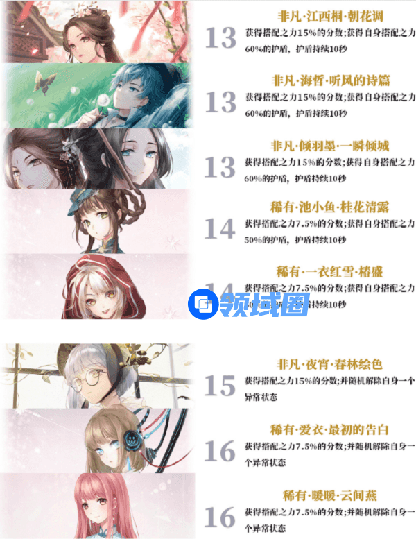 7、杜若岚纱:抽了春节阁的话,这卡一般不但能复苏还能升点技能〈如果氦条不低,不识君的技能等级大于杜若岚纱的话,则不识君优先度高于杜若岚纱。)