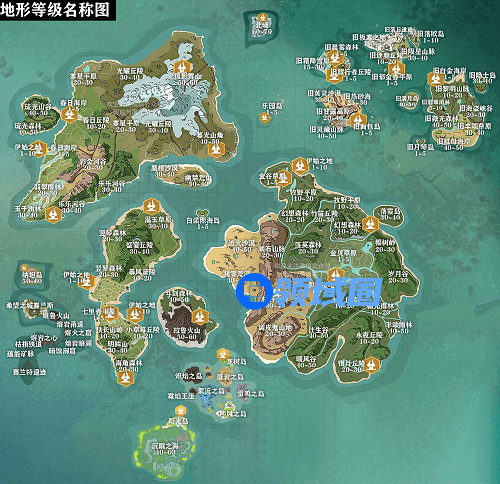 1、上图就是目前版本里所有地形的名称和等级分布图了,玩家可以按照上图去寻找。