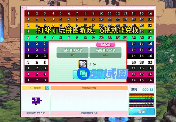 街机硬币获得方法:建议大家玩拼图小游戏,有补丁情况下7~8分钟一把,一把给50个硬币,玩6把就能兑换。