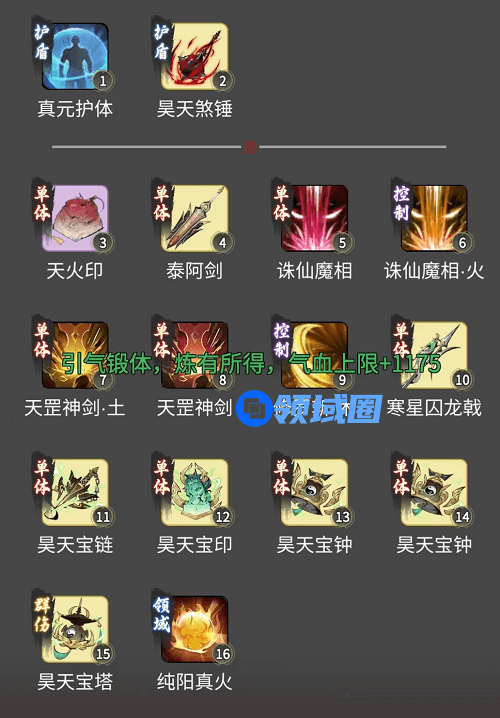 3、护盾方面,只带真元护体和蓝回灵锤就可以做到在战力5000多亿的普通对战中双盾循环了。