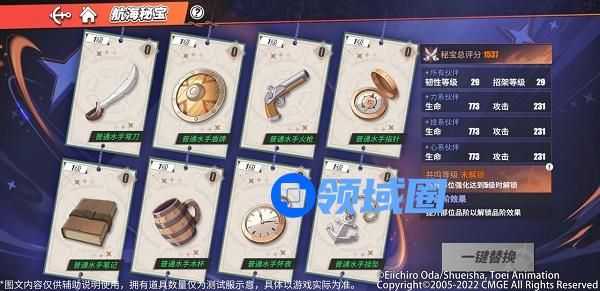 4.所有秘宝部位的强化等级都满足条件时,航海秘宝的共鸣等级将提升,解锁独特的共鸣效果,同时开启下一阶段的强化等级。