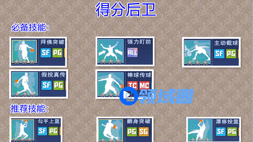 2、普通技能升级顺序:强力盯防>主动截球>漂移投篮>假投真传。