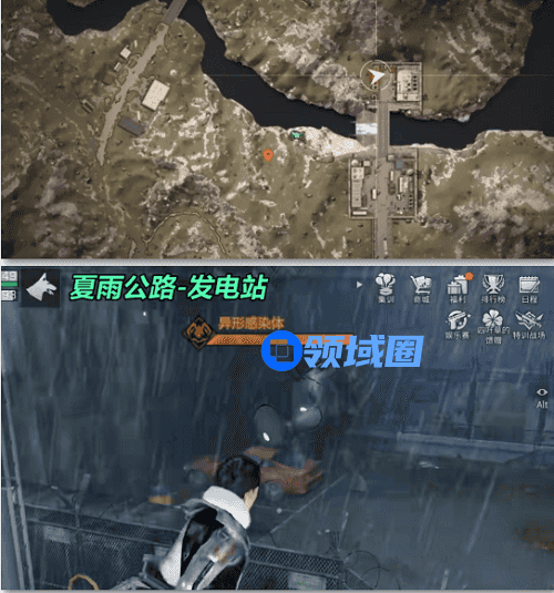 首先在1级地图夏雨公路找到发电站的位置就可以找到异形感染体在旁边还可以开启高分子宝箱
