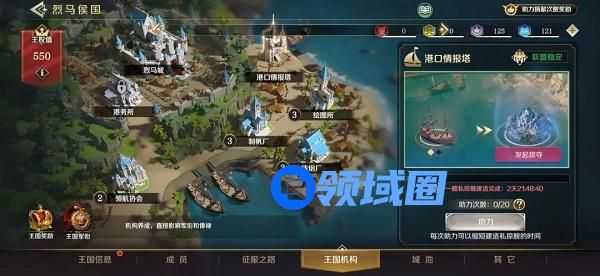 1. 领主需要进入联盟王国机构界面,点击港口情报塔建造私掠舰(联盟成员可进行助力缩短建造时间);私掠舰建造完毕后,盟主或官员可对地图上符合掠夺条件的港口进行掠夺宣战。