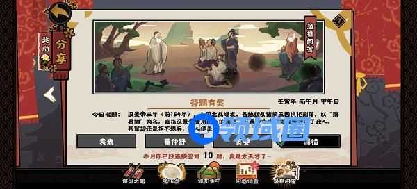 3.渔樵问答中每天都会有各种各样的题目,大部分为历史知识,也有一部分为游戏内知识,游戏宝手游网将会每天持续更新答案,欢迎大家关注。