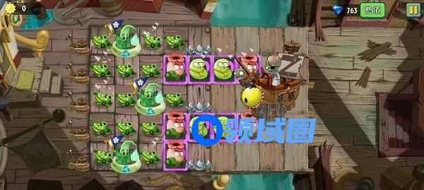 推荐阵容:熊果激光豆速刷阵,因为海盗无尽陆地僵尸集中聚集在2 4两路,所以排队比极长,激光豆的超远距离攻击和高伤害配合熊果大招,可以帮助我们快速进行过波。