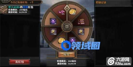1、vip2等级以上的玩家,可以在公会中向其他玩家发放红包,每天有一次免费发放红包的机会,每个公会成员都可以开启一次,通过转盘获取各种奖励
