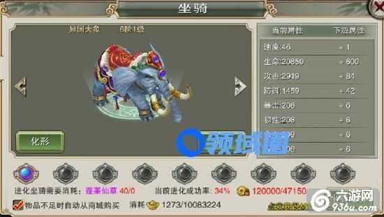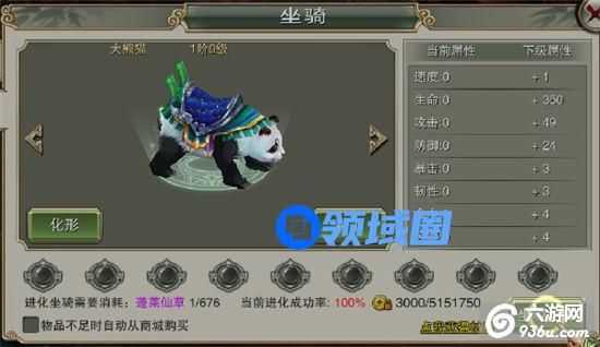 3、升级坐骑消耗蓬莱仙草,坐骑的等级与主角等级无关。