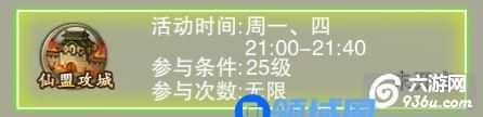 活动开启期间,玩家可通过活动界面或者仙盟界面的仙盟攻城选项进入。