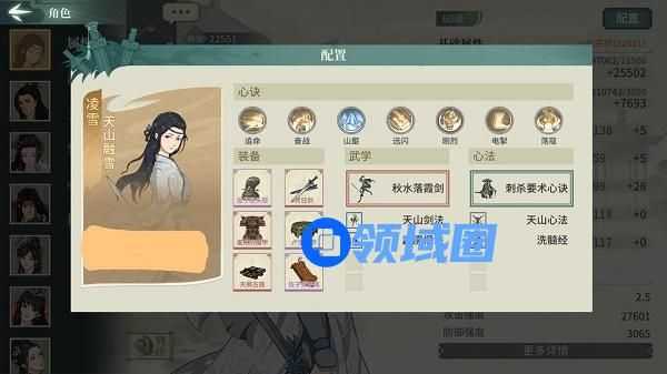 2.很平民的凌雪,秋水剑法在江湖商店可以买,天山古剑、太极剑法,也都可以用。