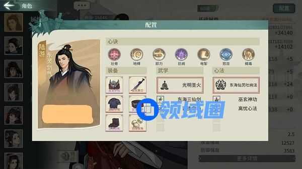 4.甲陆游,装备不重要,随便给就行,主要作用就是用武学清BOSS的增益和心法给BOSS破防。