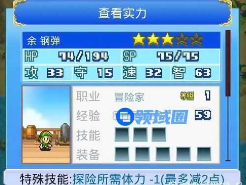 3、实力方面,因为冒险家这个职业速度成长率比较高,前期也基本没啥好装备。在装备不重的情况下,冒险家闪避率相对于开局几个职业来说仅次于武道家。初始武器是一把匕首。