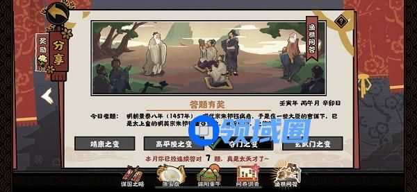 2.正确答案为夺门之变,玩家们选择第三个答案即可获得奖励。