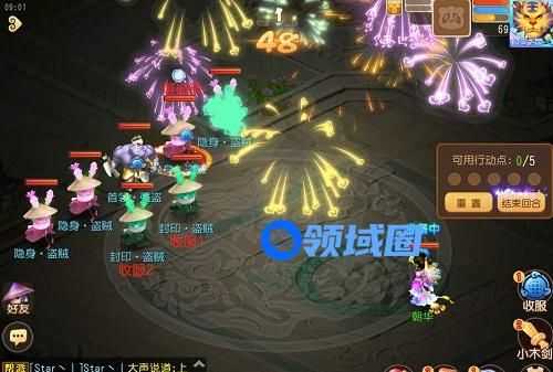 5、第三回合:收服隐身1,勘破隐身2,收服隐身2,给首领一把小木剑,结束战斗,3星到手。