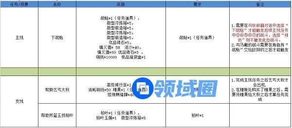 3.绿色圈圈为支线任务