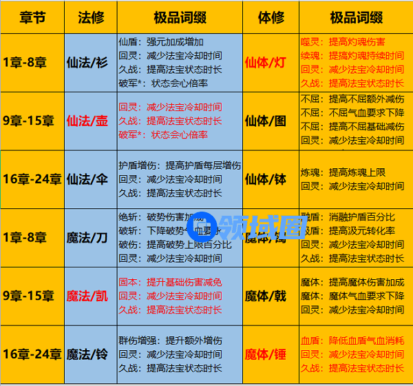 1.由于每天挑战10关,那么一周可以挑战70关,而大部分章节都是50关,故而每周免费征收次数可以在当周进入新章节使用,可以增加新材料获取还有气运获取!而平日囤积的征收令具体什么时候使用可以在自身流派的核心法宝(下图红色字体)出现后使用,如魔法可以在通关15关之后直接把征收令用完,以此炼制极品魔铠,毕竟一个极品词缀的仙魔法宝无论是自用还是拍卖都是一个不错的选择!