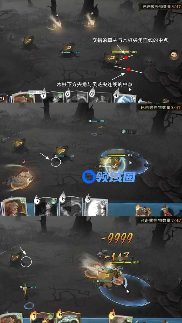 2.点击草丛与木桩尖角连线的中点释放随从显形,迅速点击中间木桩下方位置,不要乱动,接下来等技能cd结束就搬完了。