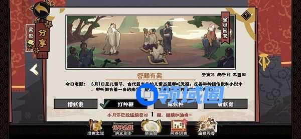2.正确答案为打神鞭,玩家们选择第二项即可获得奖励。