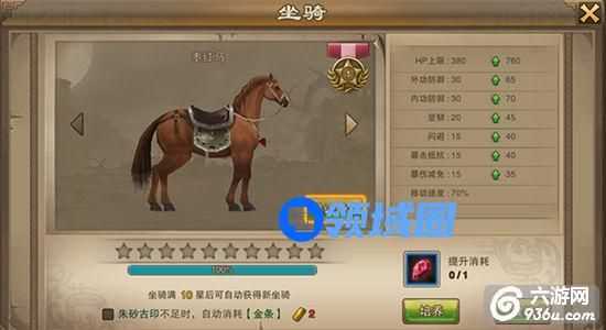 2、坐骑通过消耗朱砂古印来升星,当达到10星之后就可以获得新的坐骑,新的坐骑外观更酷炫,战力也更高哦。用来升星的朱砂古印可以通过副本青乌子墓获得。