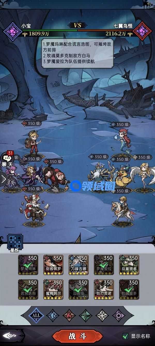 4.玩家们按照上图所示调整自己的阵容及站位即可顺利过关,大家快去试一试吧。