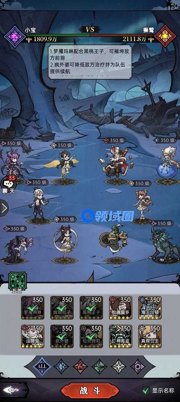 3.魔镜物语沉睡诅咒第三章3-3角色阵容及站位如下: