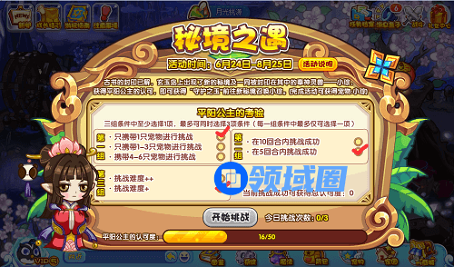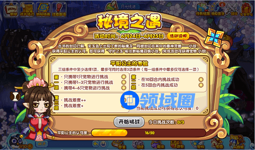 5、活动开启后,平阳公主会给出一张考验清单,需要大家选择适合自己的难度进行挑战,这里我们推荐选择: