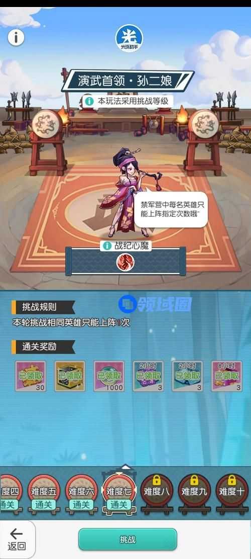 3、敌方英雄(神话晁盖、神话唿延灼、神话孙二娘)VS我方英雄(精英+扈三娘、神话燕青、神话凌振)站位:近战前排远程后排(正常输出即可)该阵容应对关卡难度:,一次性过关几率:99%。