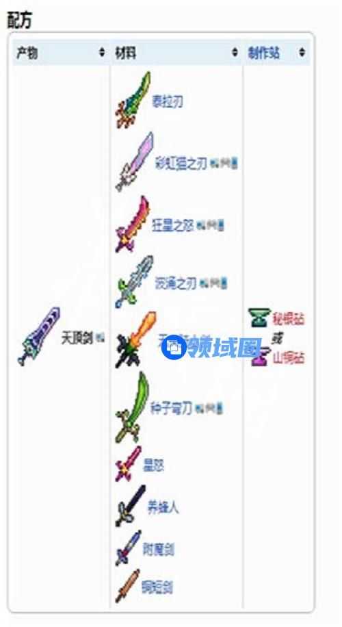1、合成配方:虹猫之刃、泰拉刃、狂星之怒、波涌之刃、无头骑士剑、种子弯刀、星怒、养蜂人、附魔剑、同志短剑