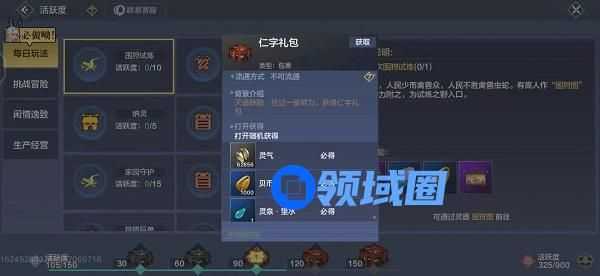 5.活跃任务:每一天会有活跃活动,做了每日正常的活跃活动会有奖品箱子,奖品箱子不需要直接获得,要等将近下线以前获得如此会让箱子的以极限的方式让我们增添灵气