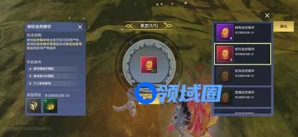 8.神草催化:前往北山地区寻找神草,使用自然精华可以催化紫芝神草获取灵气。(北山地区异兽较为强大,萌新可以组队前往~)