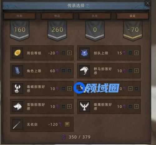1.因为无名剑主生来就与各个部落为敌,想要好好发展,前期用来贿赂其他部落以生存的钱必须带好,因此,我们先点一份大资源包和两份中资源包用来交保护金,然后将力量,敏捷,耐力,精神秘药点满,再将智慧水晶点到上限。