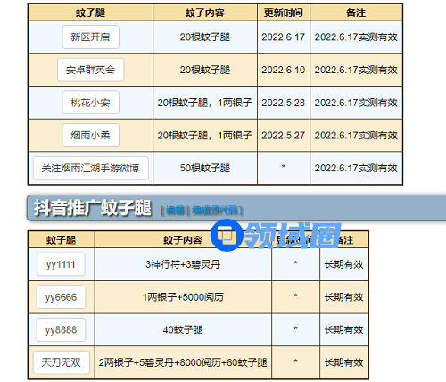 1、新区开启:20根蚊子腿2022.6.172022.6.17实测有效。