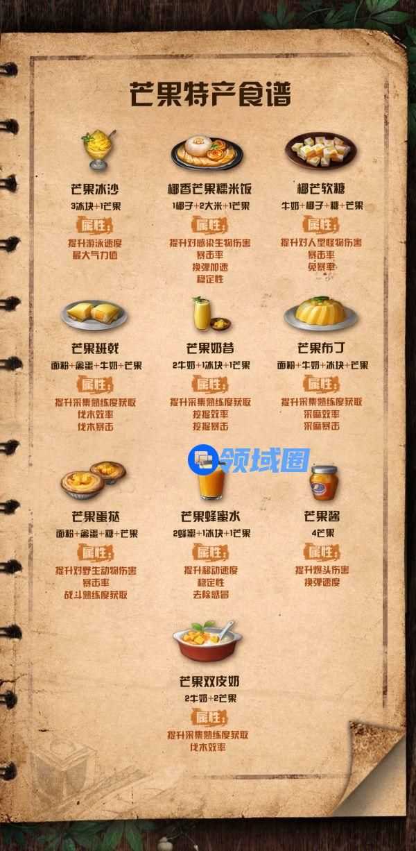 在明日之后中,玩家可以制作各种各样的美食,很多玩家都想要知道明日之后芒果食谱配方有哪些,游戏宝小编为大家带来明日之后芒果食谱配方属性大全最新。