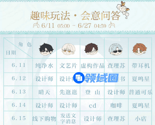 光与夜之恋会意问答第七天答案攻略