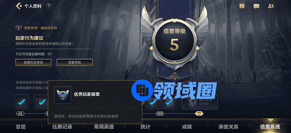 1.当玩家信誉积分达到300分时即可激活优秀玩家徽章,优秀玩家徽章会在玩家信誉积分等级下降后自动消失。