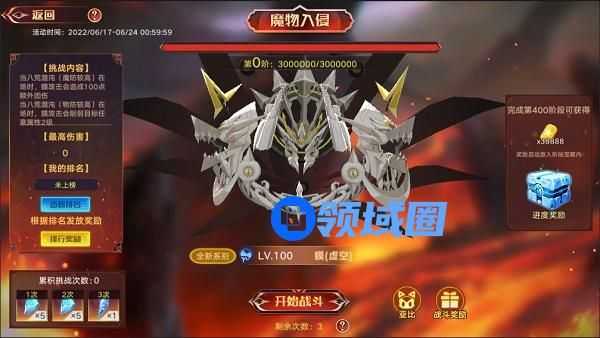 3. 每次挑战魔物战斗胜利后,将根据本场战斗对首领造成的伤害值,获得对应阶段的战斗奖励;