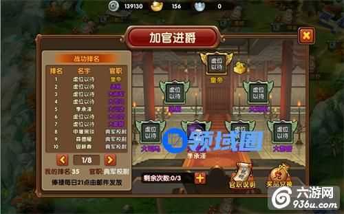 官职战入口在右侧选项中,点击官职战,即可进入官职界面