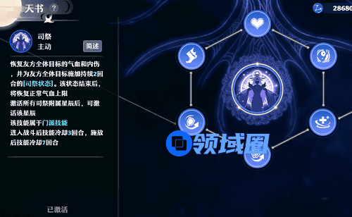 4、主动技能【司祭】回复全体友方队员部分气血和内伤,并增加2回合的10%气血上限和大量法术防御。