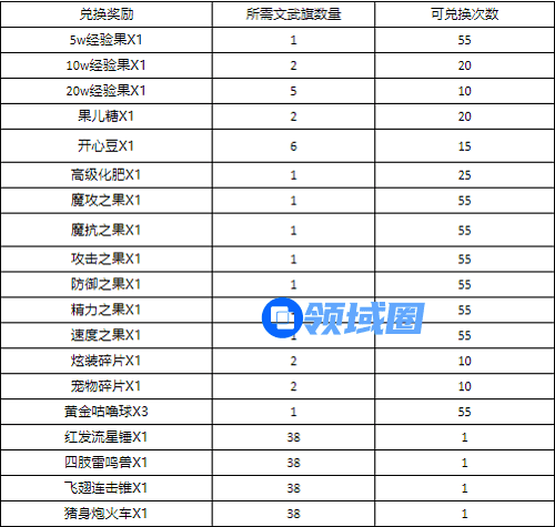 6、可兑换奖励及需要的“文武旗”数量说明: