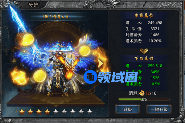 2.守护提升等级可以获取基础攻击生命值以及对怪减伤的属性,除此之外还会百分比提升所有途径获得的攻击加成。