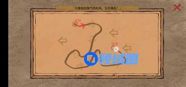 2.这一关的提示非常明显了,东风是捣乱的,所以在画线时是错误选项,避开向左指的剪头就可以了。