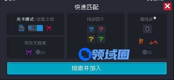 5.在这里你可以选择你要加入的模式,每一个都可以单独选择,打材料就打试炼,打蓝币就开挑战因子,不过有时可能会搜不到。