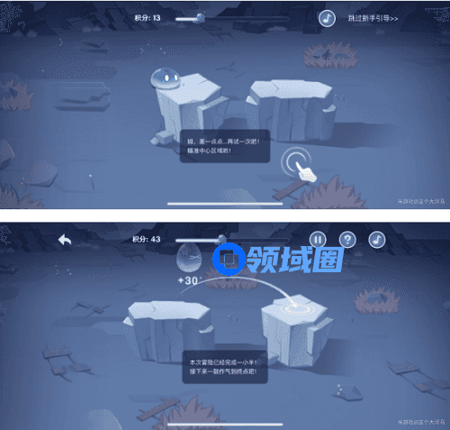 3、史莱姆在跳往下一个石头时,如果不在中心区域,也就是在目的地石头的边缘,分数会下降,在中心区域的分数一般是30,边缘可能只有10分左右,这个积分会影响挑战结束后兑换币的数量。