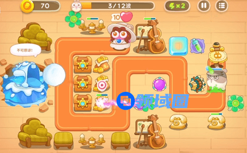 在出口放个2级风扇和多重箭,打兔子的同时能清理右上方的建筑。多重箭开始可以先打大提琴,因为刚开始出的普通兔子,风扇能应付。