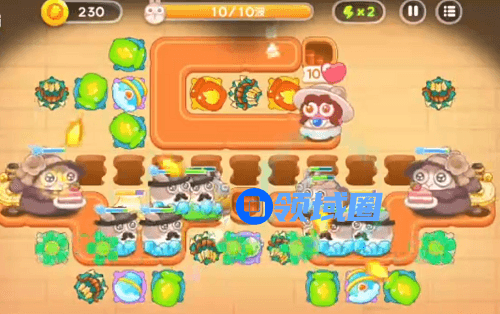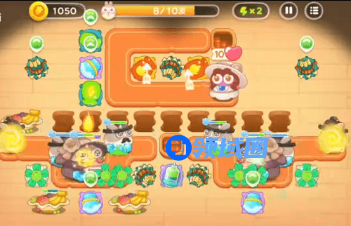 这里出兔子的数量多,种类也多,像贵妇兔、滑板兔都会密集出。应付的方式是一定要间隔建雪球,保证兔子一直在减速,剩下的就是建炮塔了,